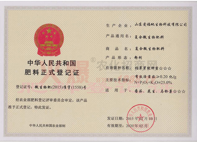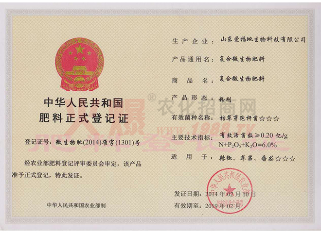山東愛福地生物股份有限公司始建于1992年,是在原有企業(yè)的基礎(chǔ)上,于2008年增資近2000萬元,新組建的集科研、開發(fā)、生產(chǎn)、銷售為一體的高科技肥料及生物制劑綜合性企業(yè)。公司生產(chǎn)基地位于濟(jì)寧市中區(qū)喻屯經(jīng)濟(jì)開發(fā)區(qū),占地近30000平方米,建筑面積11000平方米,員工200余人,是農(nóng)業(yè)部較早批準(zhǔn)的國家肥料定點(diǎn)生產(chǎn)企業(yè),是國內(nèi)專業(yè)的全水溶肥生產(chǎn)企業(yè)、政府農(nóng)資采購中標(biāo)企業(yè)。