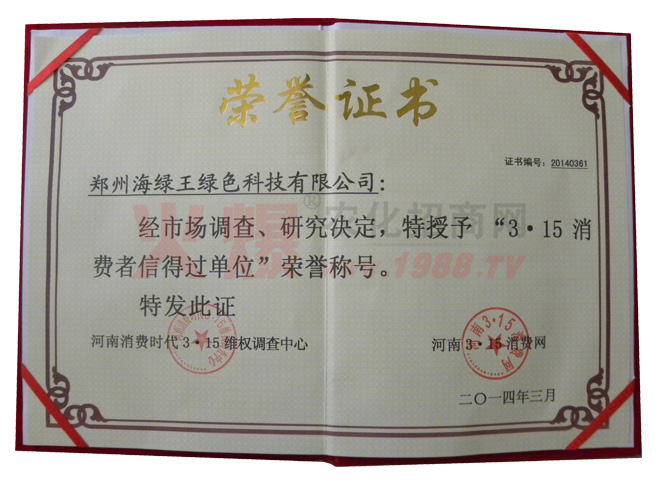 如今的海綠王,各個部門及各項規(guī)章制度均以完善,產(chǎn)品的生產(chǎn)也步入了規(guī)范化管理,起步雖晚,但成績喜人,海綠王被評為“中央電視臺AAA誠信企業(yè)”“河南衛(wèi)視《梨園春》欄目上榜品牌”、“3/15消費者信得過單位”“河南省肥料協(xié)會常務理事單位”、“河南省十佳科技型具競爭力企業(yè)”、“ISO9001質(zhì)量認證”、“2012綠色農(nóng)資品牌”、“中國果菜無公害科技示范單位”、“世界貿(mào)易組織河南省推薦單位”、“2009中國農(nóng)藥企業(yè)具成長性100強”、“河南民營企業(yè)發(fā)展促進會常務理事單位、”河南科技學院大學生就業(yè)創(chuàng)業(yè)見習基地“等數(shù)項榮譽。目前的海綠王,穩(wěn)步發(fā)展,勇于創(chuàng)新,走出了具有海綠王特色的綠色農(nóng)業(yè)發(fā)展之路,力爭為中國綠色農(nóng)業(yè)、中國新農(nóng)村的建設與發(fā)展貢獻自己的力量。